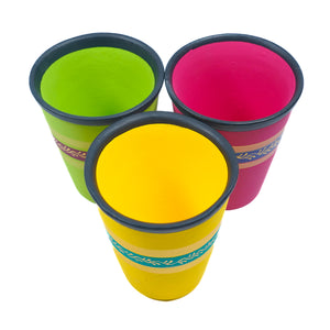 Product Description: Bring a touch of vibrant charm to tabletops or workspaces with this hand-painted set of three terracotta clay planters (9 x 5.8 x 10.5 cm, 225g each). Ideal for indoor and semi-shade areas, these decorative planters are perfect for succulents or small foliage. No drainage holes; recommended for tabletops and easy to care for with a dry cotton cloth..