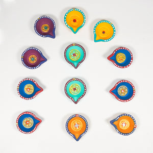 Ethnic Diya Lamp Set – 12 Hand-Painted Agals for Festive Decor