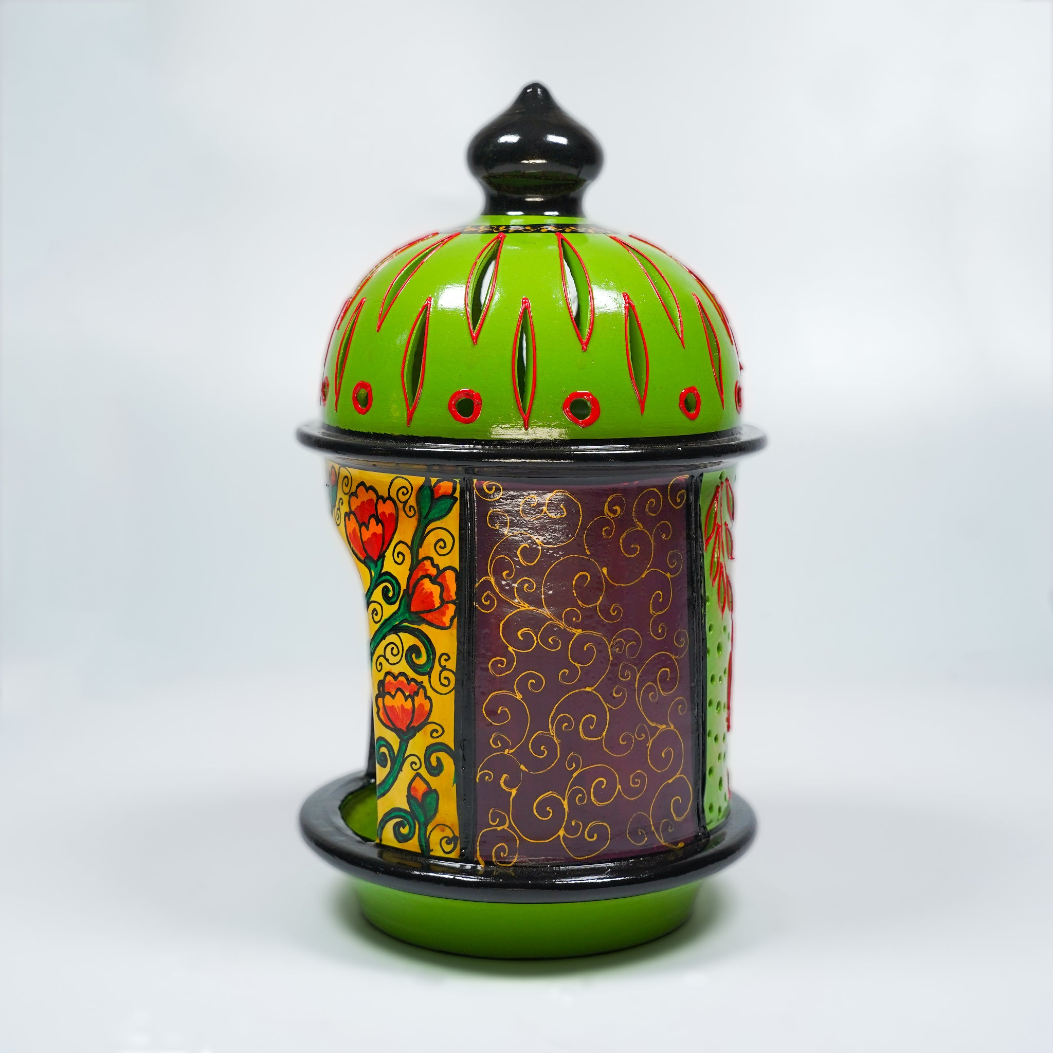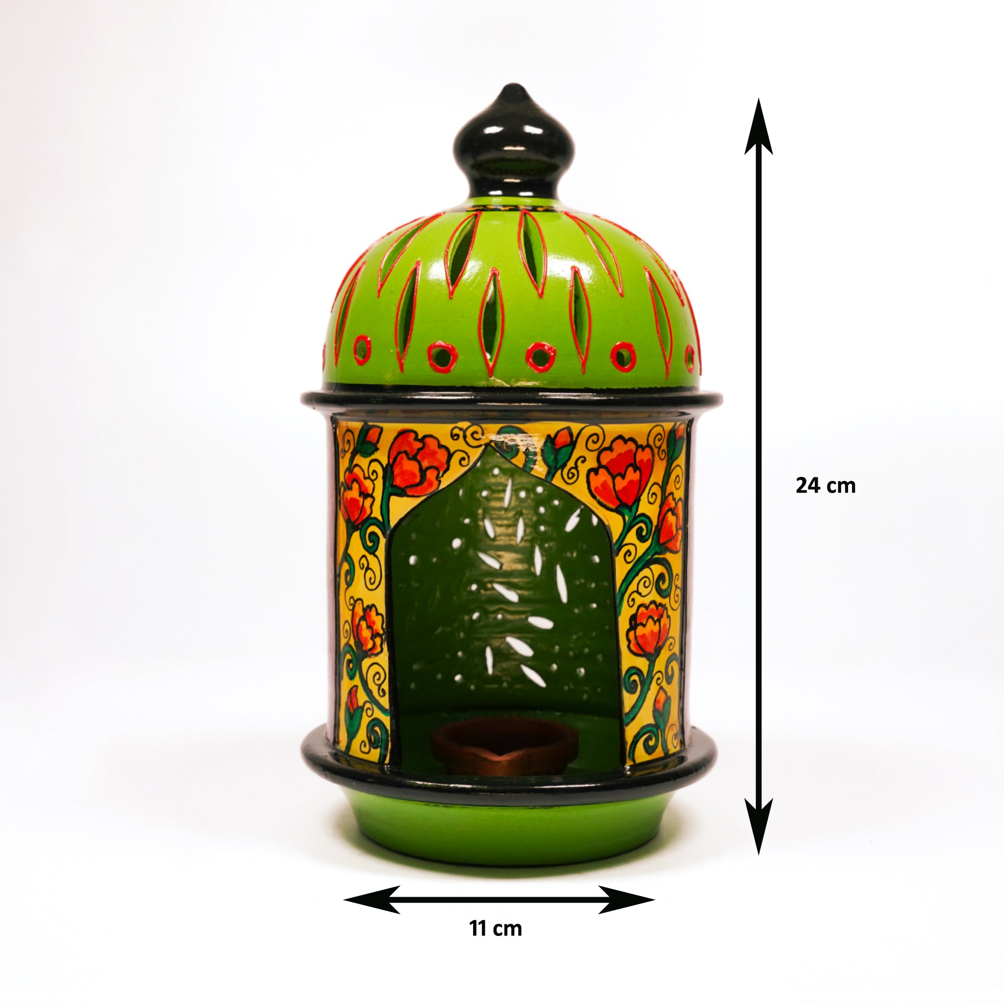 The Clay Hut Lamp is a charming ethnic piece crafted from terracotta clay. Designed with a round dome that shields the flame from excess airflow, it ensures a steady light. The intricate leaf cutwork adds an artistic appeal, making it not just functional but also decorative. Perfect as a unique return gift or for adding a traditional touch to your home décor.