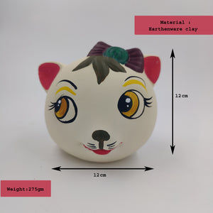 Product Description: Introduce the art of saving in a delightful way with our handcrafted and hand-Painted earthenware Cat Face bank. This charming addition to any child's room is more than just a Cat Face Bank. It is a valuable lesson in financial responsibility.
