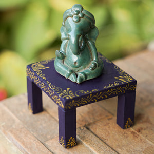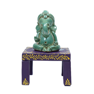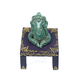Decorative Ceramic Ganesha with Painted Wooden Base