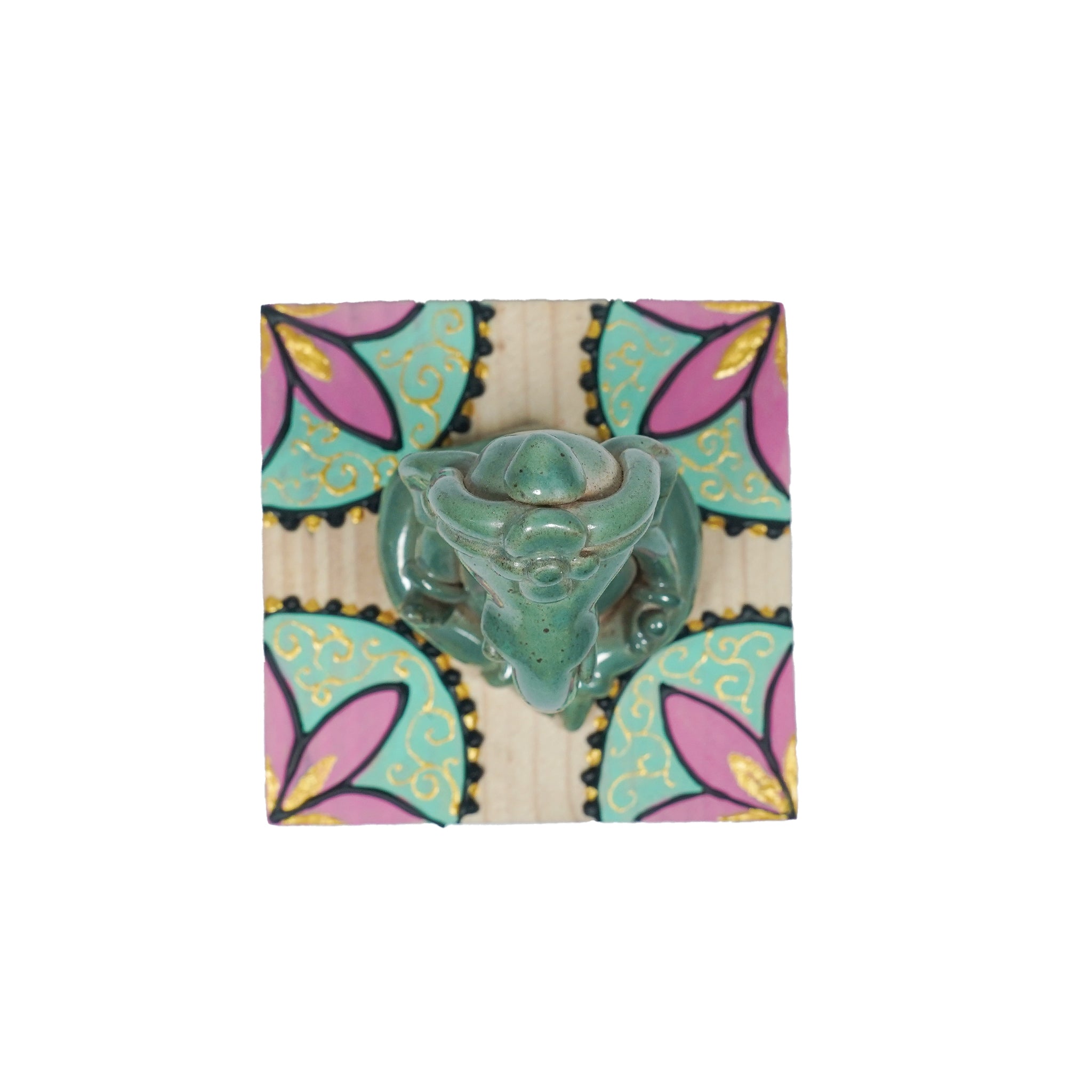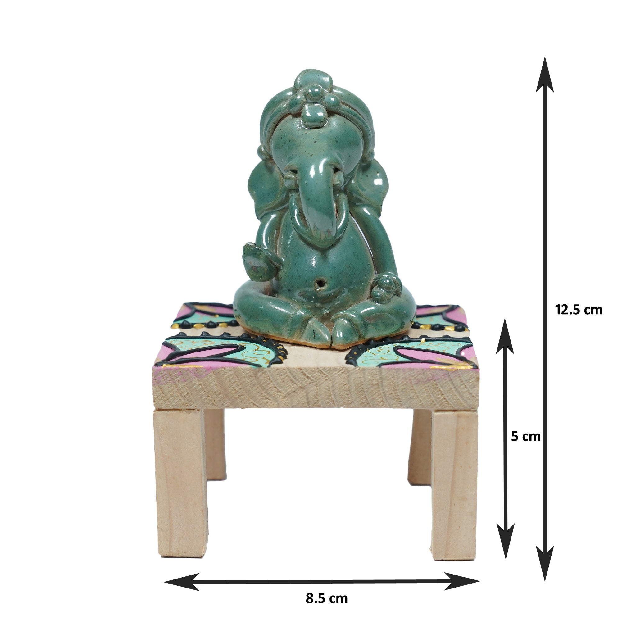 This handmade miniature Ganesh idol is crafted from high-temperature ceramic and comes with a sturdy wooden base stool. The intricate detailing makes it a perfect piece for home décor, pooja spaces, or gifting. Its compact size adds charm while carrying the spiritual essence of Lord Ganesh.