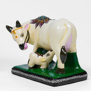 Kamadhenu with Calf – Hand-Painted Decorative Sculpture