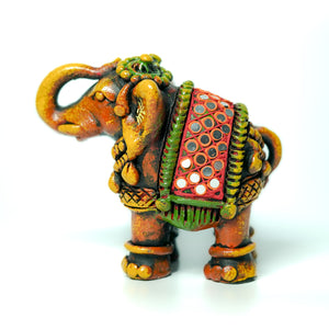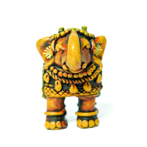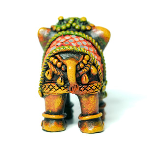Product Description: These exquisite earthenware Elephant figurines exude the rich cultural heritage of India. Handcrafted with intricate detailing, these sculptures showcase the artistry and skill of Indian craftsmen. The vibrant colours and intricate patterns adorning the Elephant' bodies are a testament to the diverse artistic traditions of the subcontinent. These figurines make for a captivating addition to any home or office décor, serving as a window into India's vibrant cultural tapestry. Measuring approximately 9.5 cm in height, these earthenware sculptures are perfect for display on shelves, tabletops, or as part of a curated collection. Embrace the essence of Indian craftsmanship with these stunning Elephant figurines.