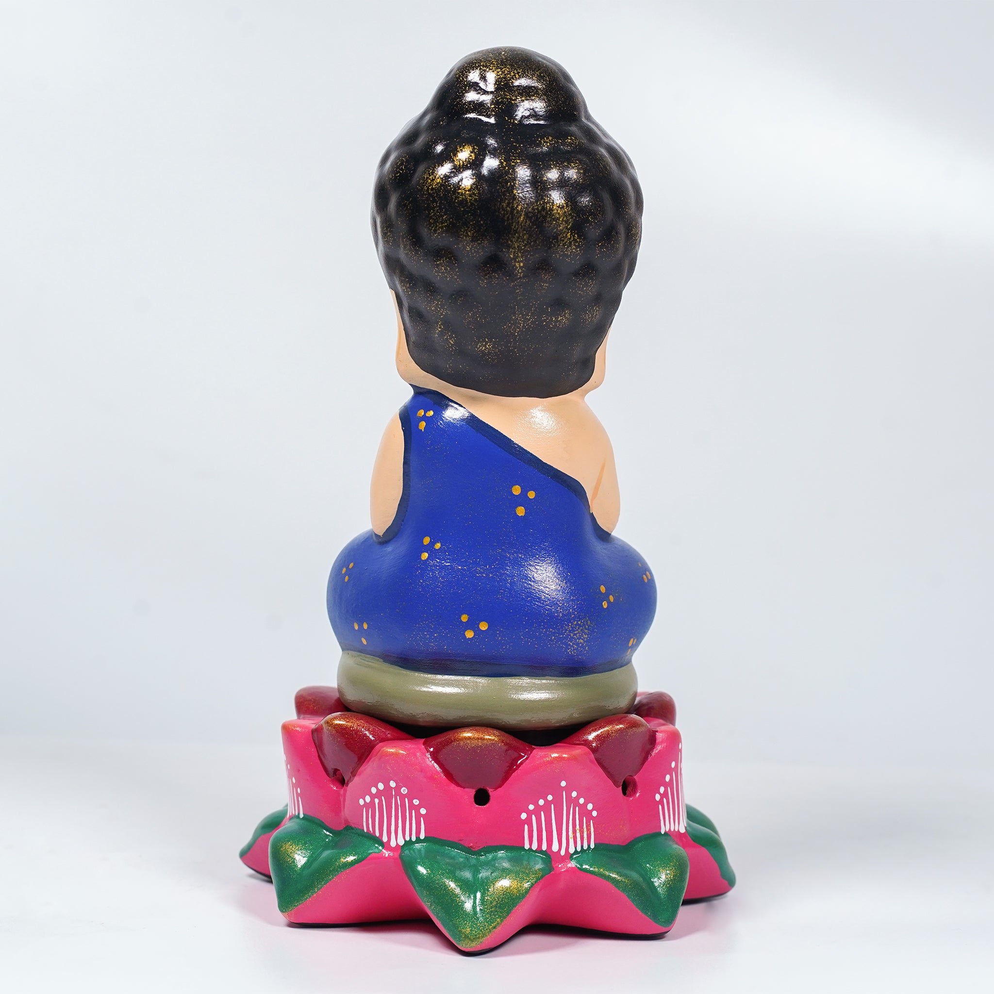 Product Description: The figure's serene facial expression, closed eyes, and posture are characteristic of a meditating Buddha, and the overall proportions a "baby" or youthful depiction. The figure is clearly seated on a decorative lotus base.