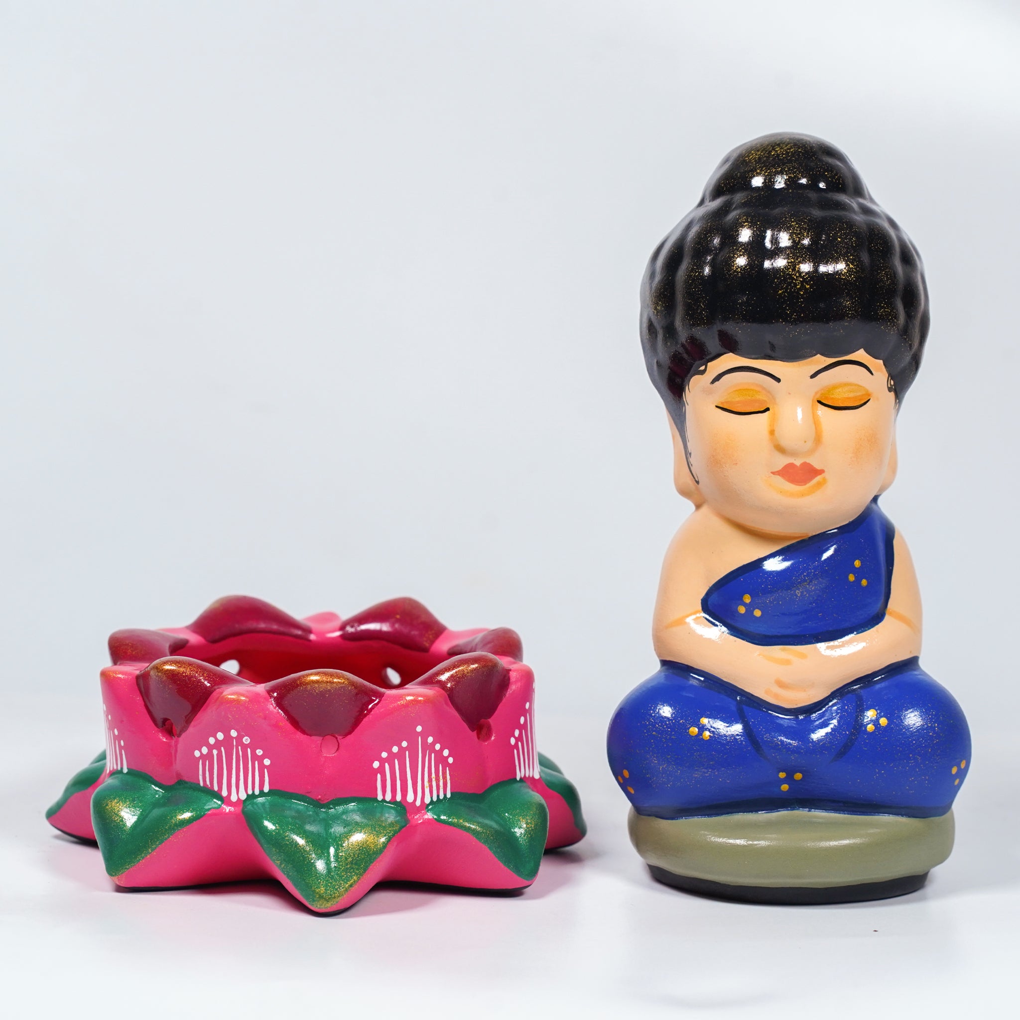 Lotus Buddha Earthenware Sculpture – Handcrafted Clay Decor