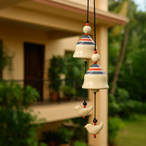 Artisan Ceramic Bell thoranum with Birds – Garden & Balcony Hanging Ornament