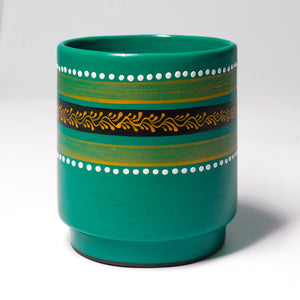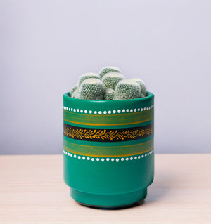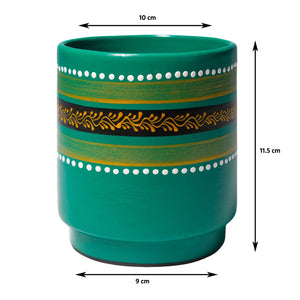 Handcrafted Planter with Rich Green Finish & Artistic Border