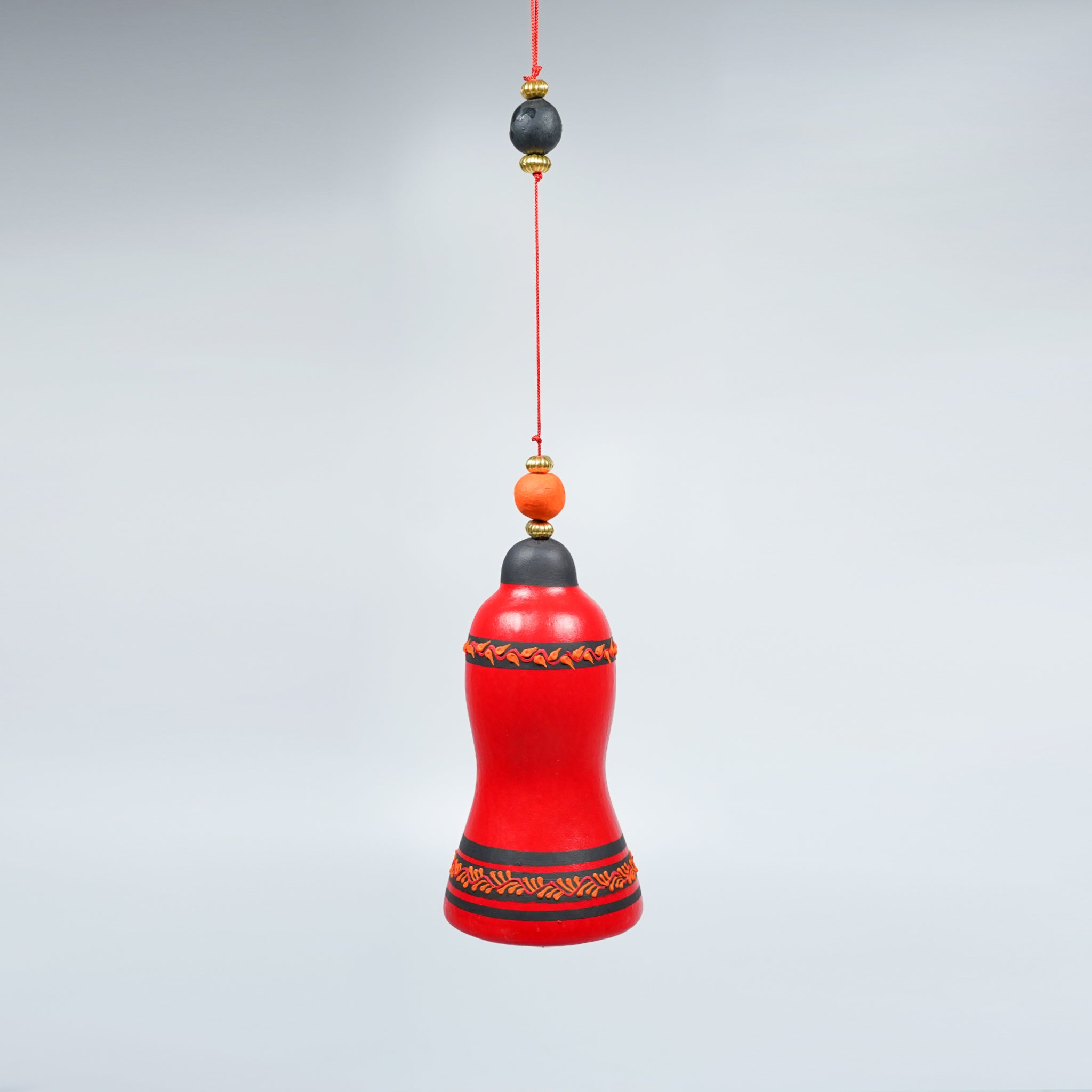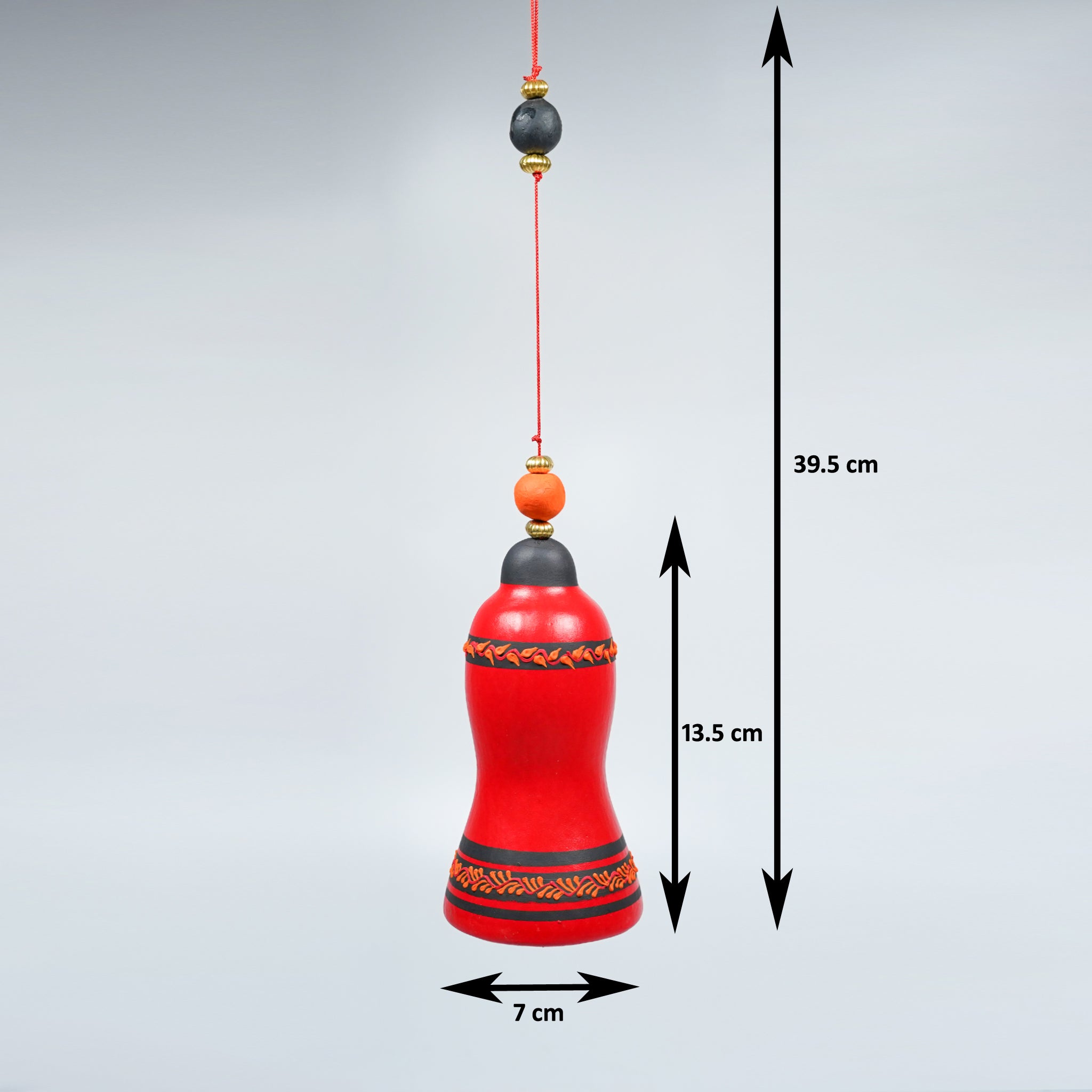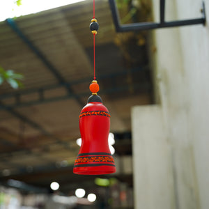 This handcrafted terracotta hanging bell is designed with nylon rope and terracotta beads, featuring bells in different shapes for a rustic charm. Perfect for adding an ethnic touch to your walls, balconies, or semi-shaded indoor spaces.