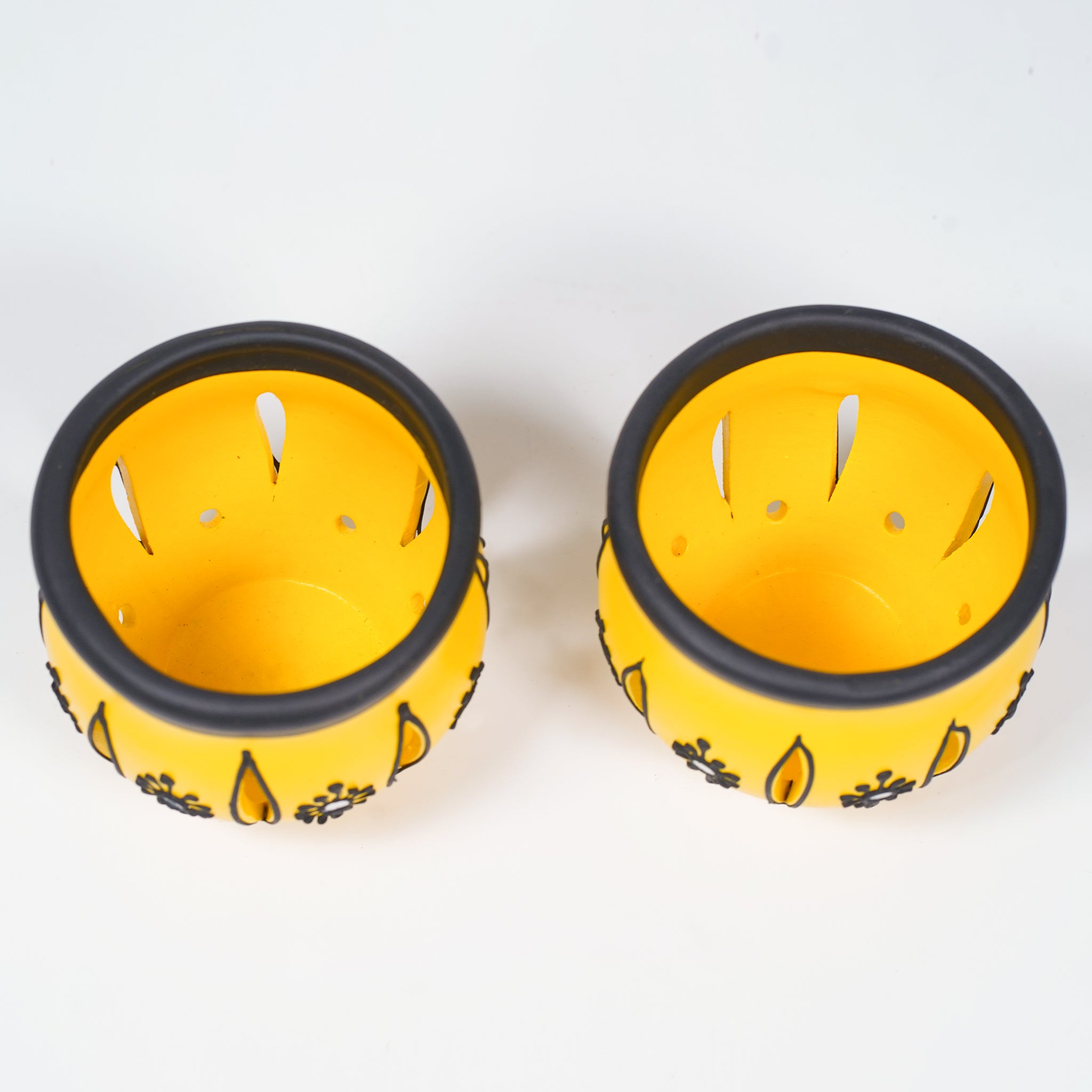 Decorative Clay T-light Holder (Set of 2) – Carved Floral Glow