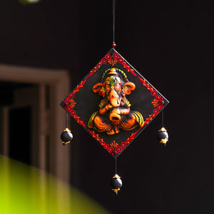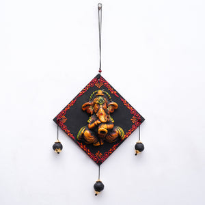 Ethnic Terracotta Ganesha Wall Hanging – Black & Orange Accents