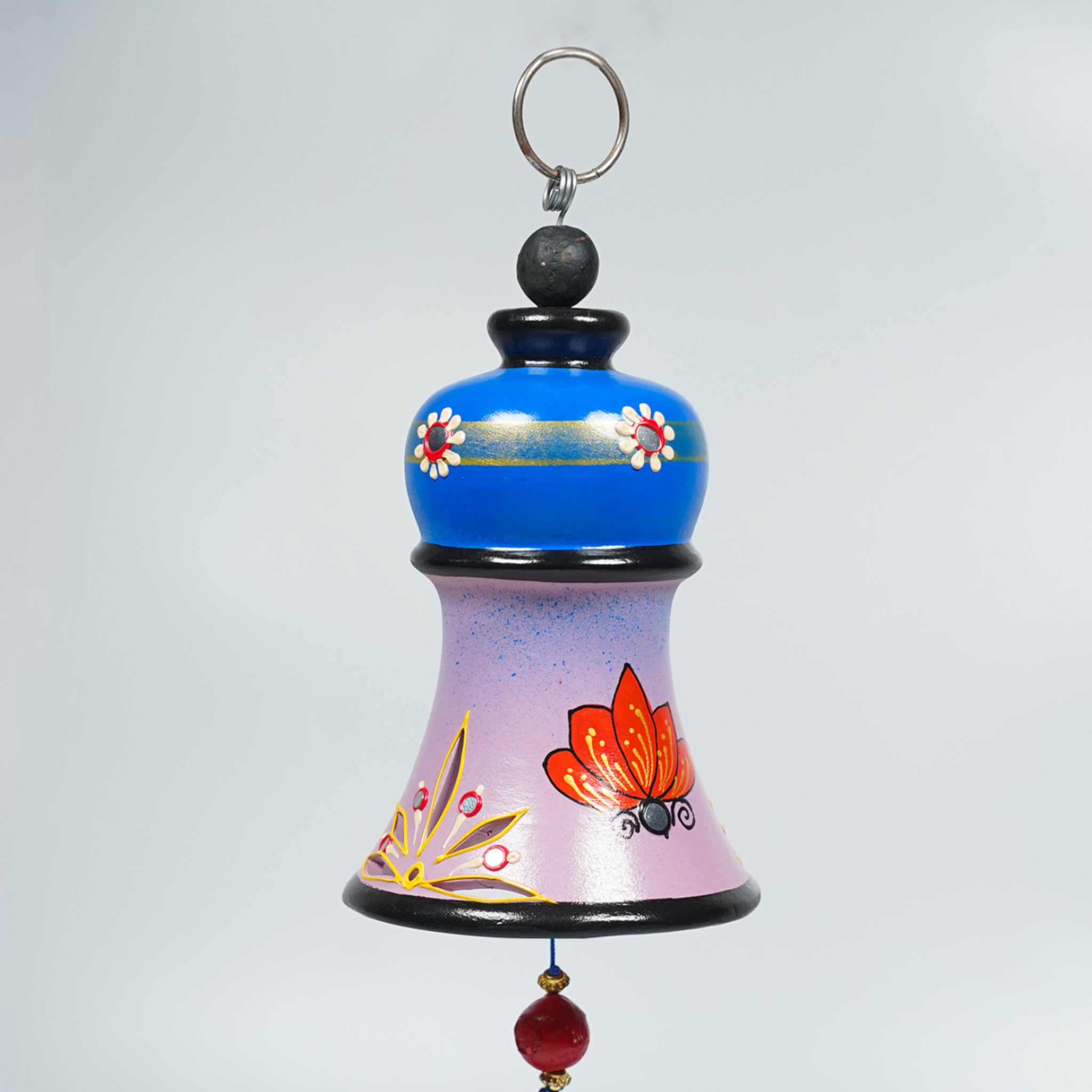 Hand-Painted Ceramic Hanging Bell with Heart Charm