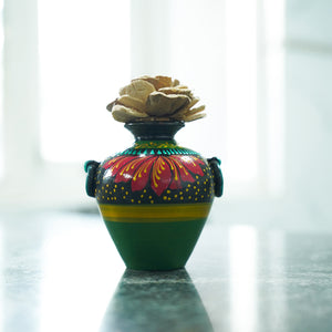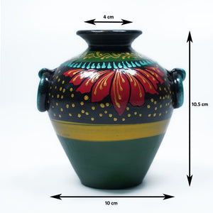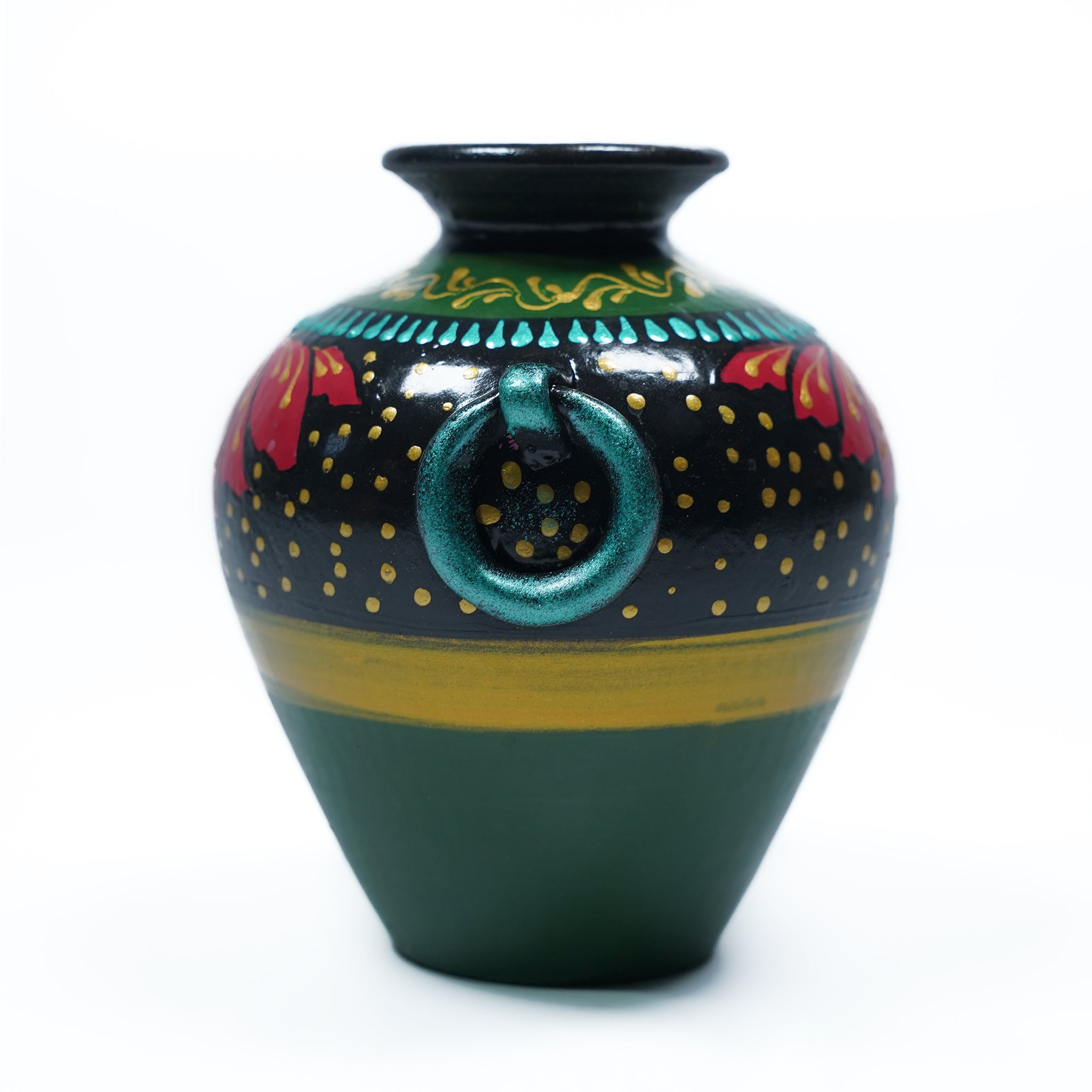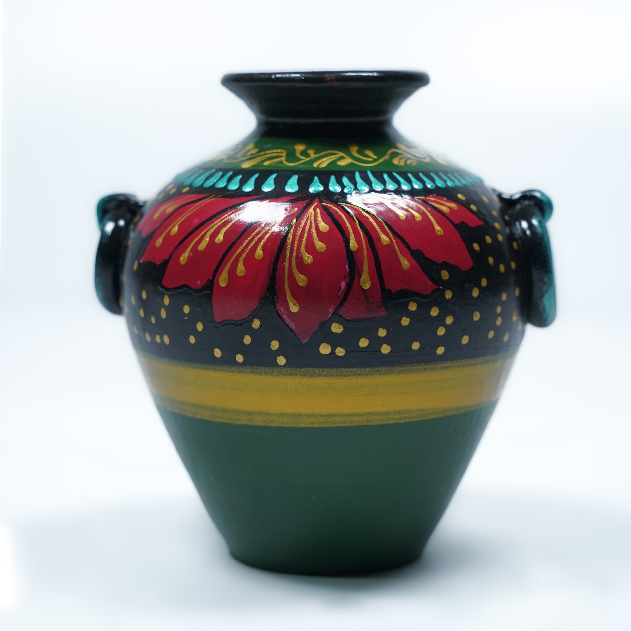 This handcrafted terracotta flower vase beautifully showcases the natural charm of fired clay. Its earthy color and textured finish highlight the artistry of handcrafting, making it a unique decorative piece. Designed with a wide body and a slender neck, it is perfect for holding flowers while adding a rustic and elegant touch to any space.