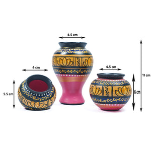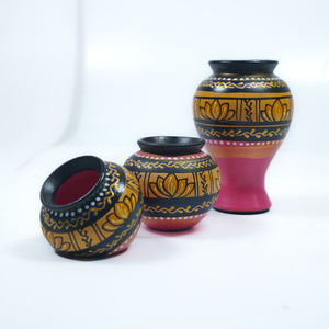Product Description: Crafted from natural terracotta clay and finished with vibrant hand-painted motifs, this trio of decorative flower vases adds a warm, artisanal charm to any space. Each piece features a classic wide-body shape with a gracefully tapered neck, designed to beautifully display fresh or dried blooms. The rich earthy texture of terracotta, combined with intricate detailing, makes these vases perfect as a centerpiece, shelf accent, or thoughtful gift.