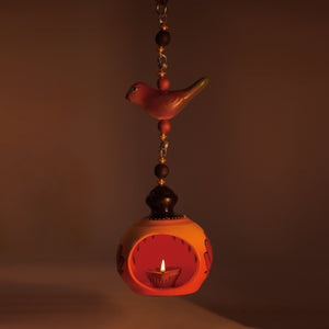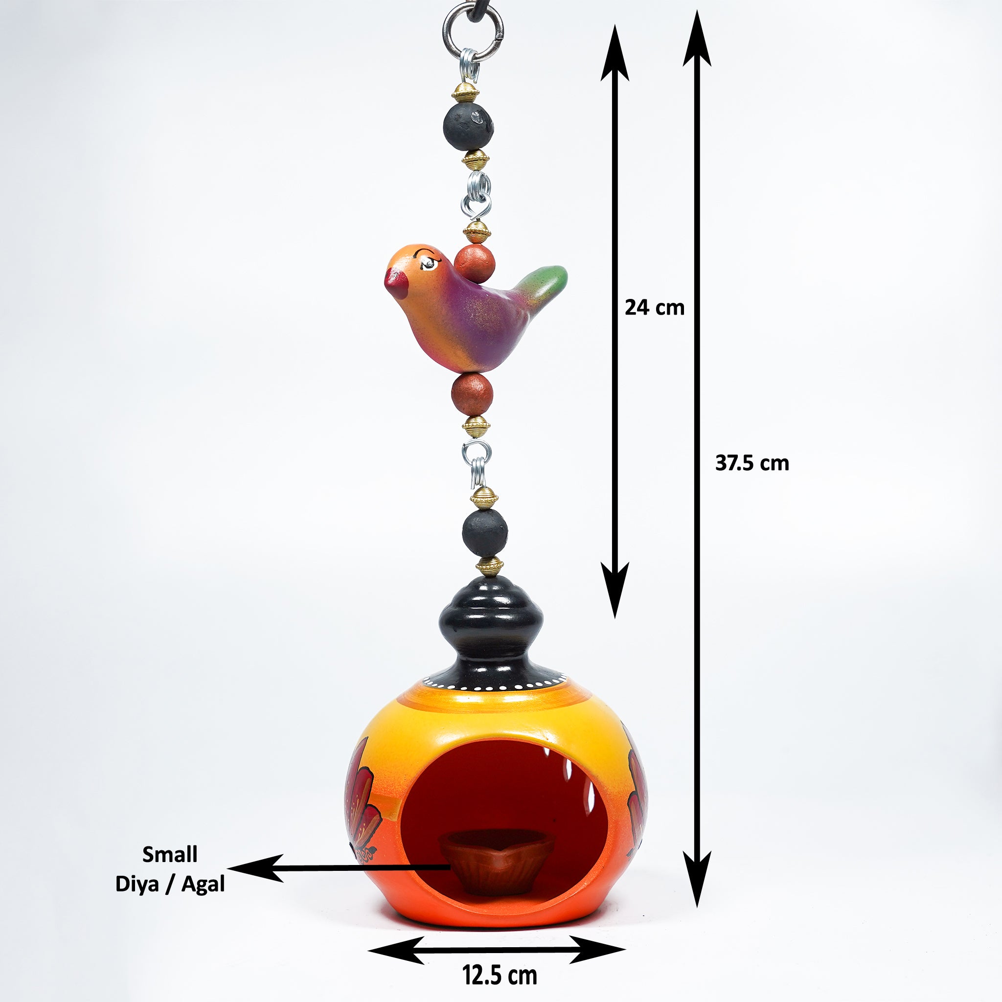 Hand-Painted Sparrow Hanging Dome Candle/Diya Holder