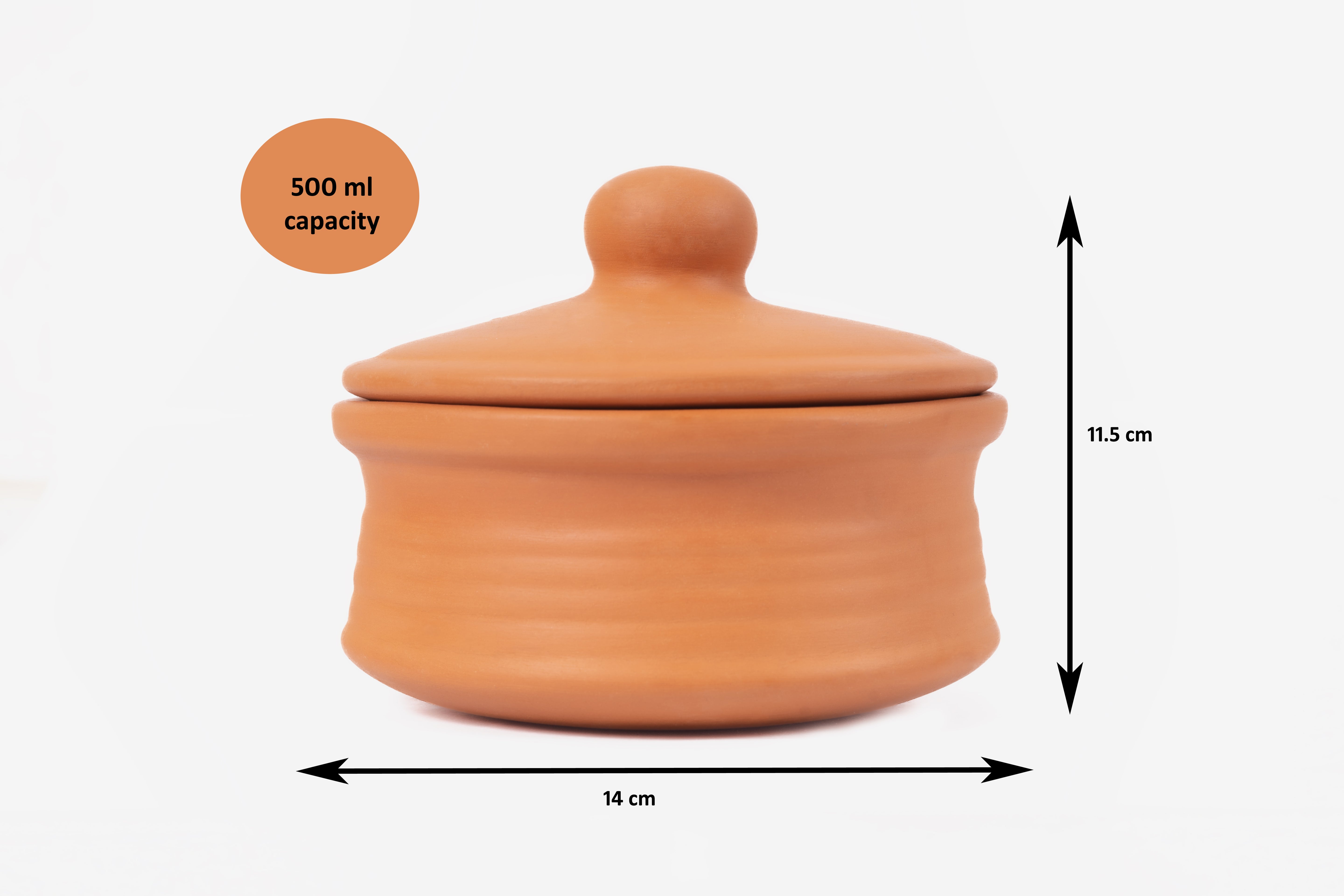 Product Description: Cooking Terracotta bowls are used for slow cooking and steaming various dishes, especially in Indian and other South Asian cuisines. Serving: They can also be used to serve food directly from the bowl, keeping it warm. Storage: They can be used to store food, as the terracotta helps to keep it fresh for longer.