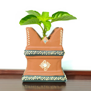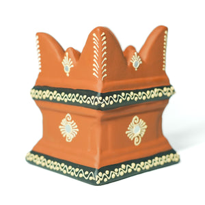 Product Description: Religious Significance: In Hinduism, Thulasi (Tulsi or Holy Basil) is considered a sacred plant. It is often planted in a Thulasi Madam, a small temple-like structure. Design: Thulasi Madams are typically made of clay or stone and have a distinctive architectural style with miniature spires, arches, and decorative elements. Purpose: The Thulasi Madam is a place to honor and care for the Thulasi plant, which is believed to have purifying and healing properties.